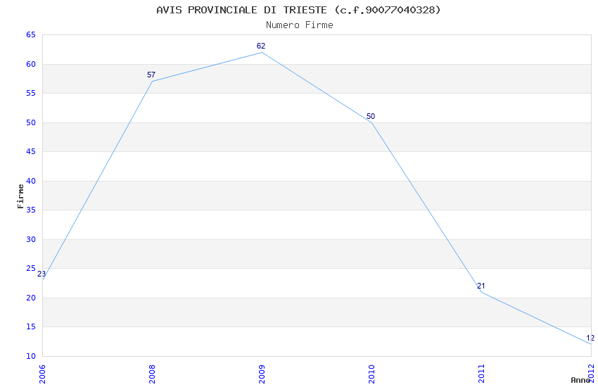 | Anno | Firme | Importi | Media | Naz. | Reg. | Prov. | Comu. |
