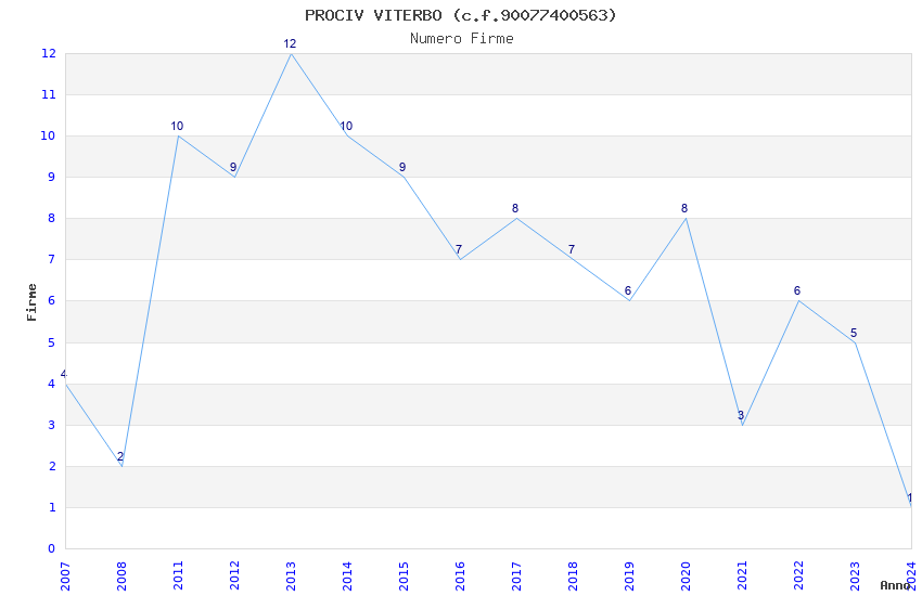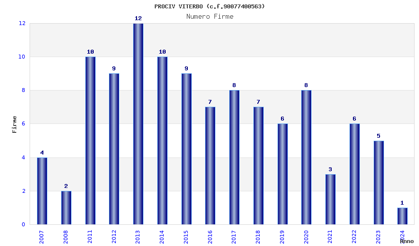 | Anno | Firme | Importi | Media | Naz. | Reg. | Prov. | Comu. |