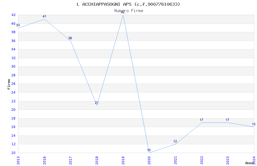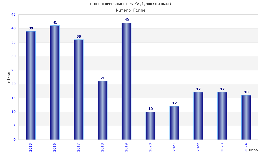 | 2016 | 41 | 1.679,53 | 40,96 | 25.293 | 1.320 | 654 | 10 |