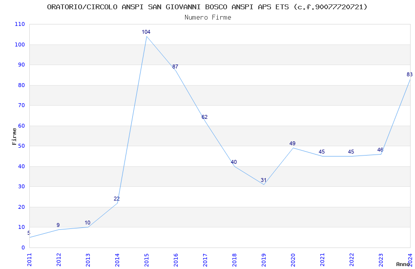 | 2015 | 104 | 1.850,55 | 17,79 | 22.903 | 1.077 | 86 | 4 |