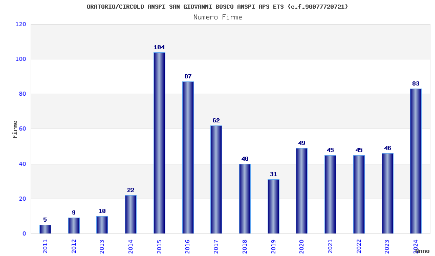 | Anno | Firme | Importi | Media | Naz. | Reg. | Prov. | Comu. |