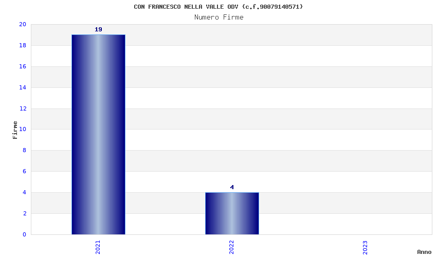 | Anno | Firme | Importi | Media | Naz. | Reg. | Prov. | Comu. |