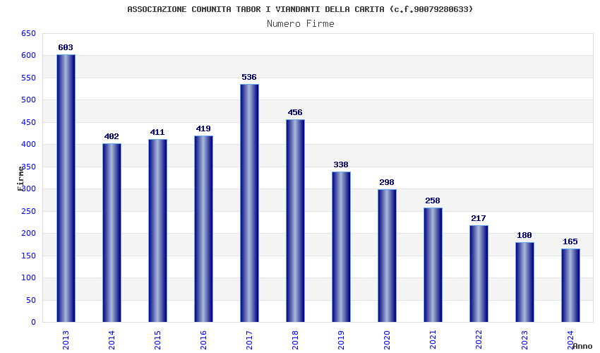 | Anno | Firme | Importi | Media | Naz. | Reg. | Prov. | Comu. |