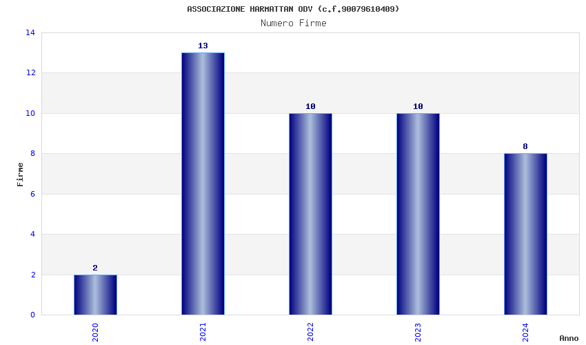 | Anno | Firme | Importi | Media | Naz. | Reg. | Prov. | Comu. |