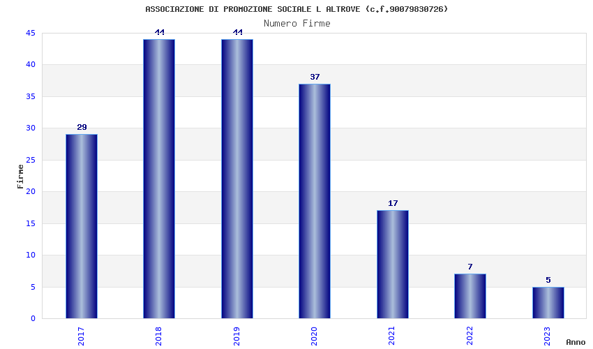 | Anno | Firme | Importi | Media | Naz. | Reg. | Prov. | Comu. |