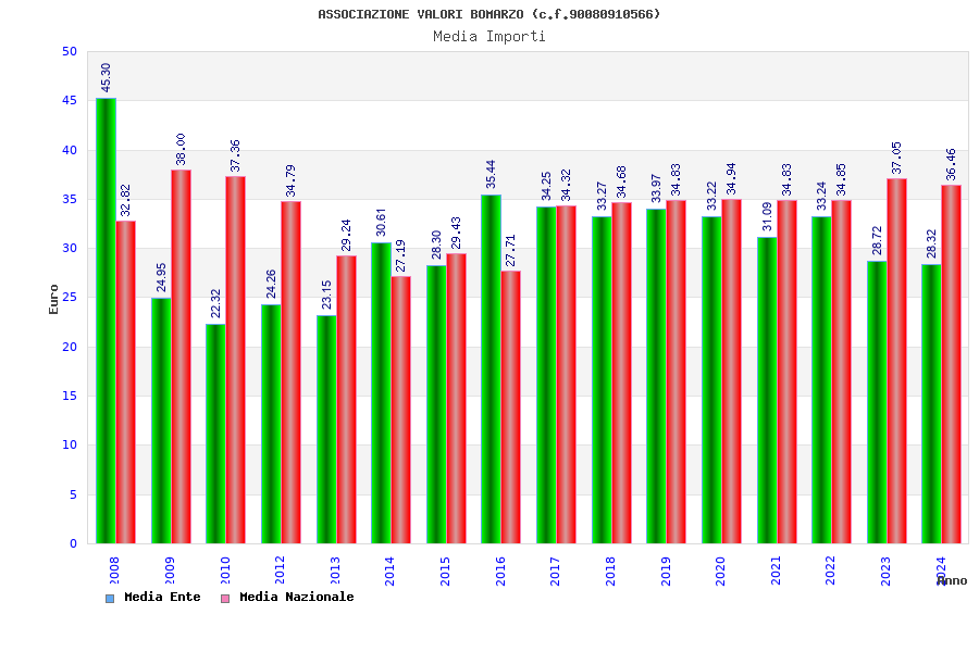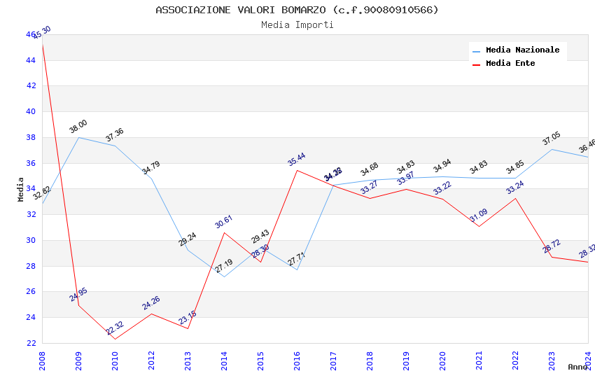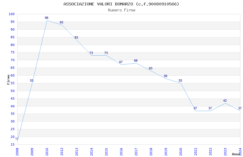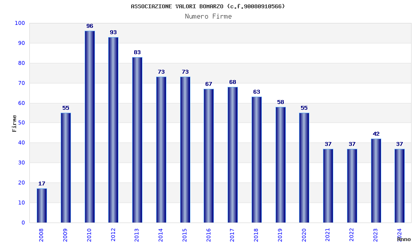 | Anno | Firme | Importi | Media | Naz. | Reg. | Prov. | Comu. |