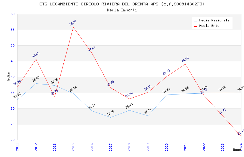| Anno | Firme | Importi | Media | Naz. | Reg. | Prov. | Comu. |