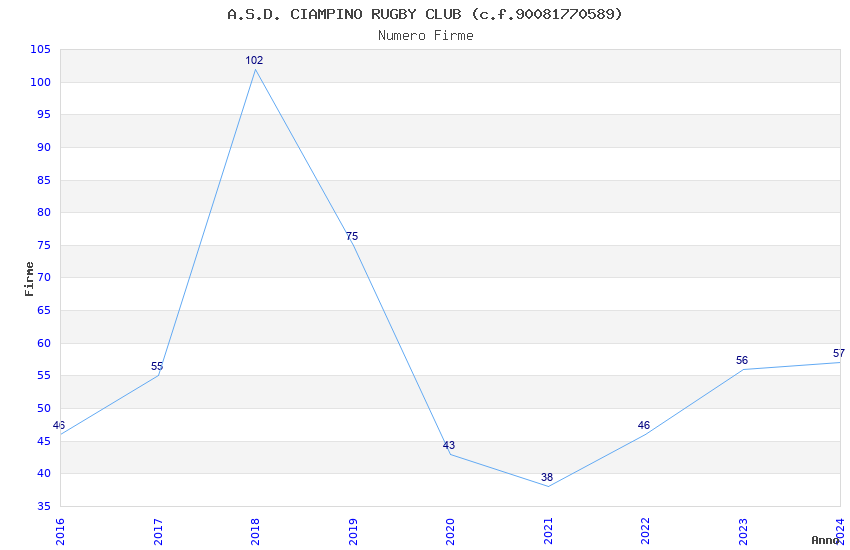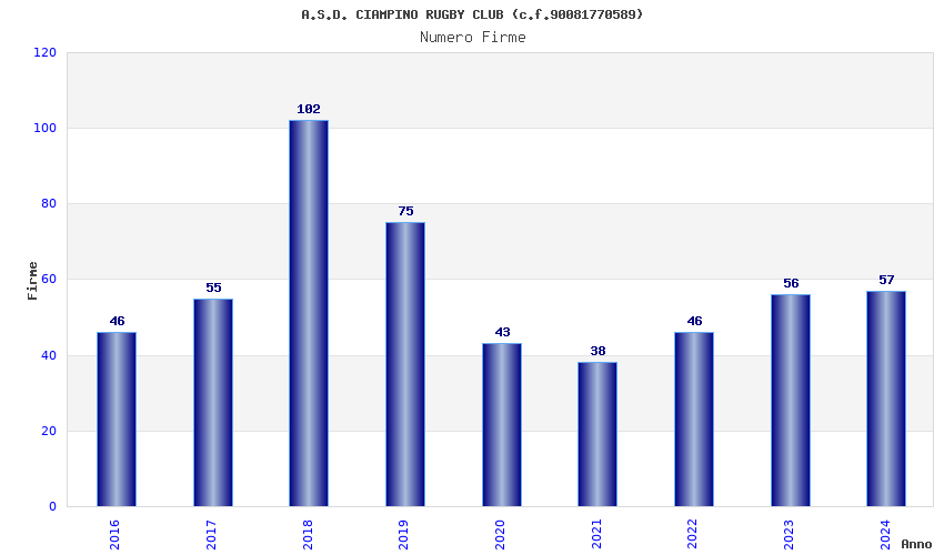 | 2018 | 102 | 3.599,55 | 35,29 | 14.962 | 1.662 | 1.449 | 7 |