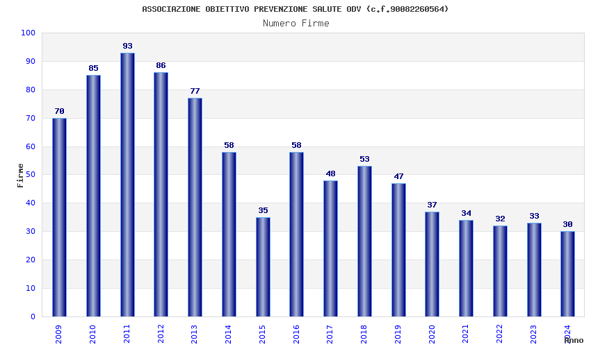 | Anno | Firme | Importi | Media | Naz. | Reg. | Prov. | Comu. |