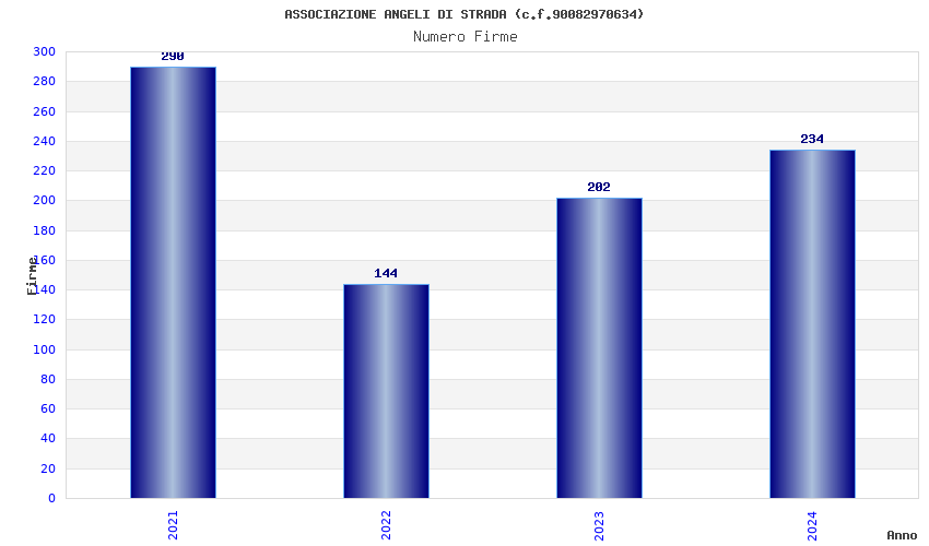 | Anno | Firme | Importi | Media | Naz. | Reg. | Prov. | Comu. |