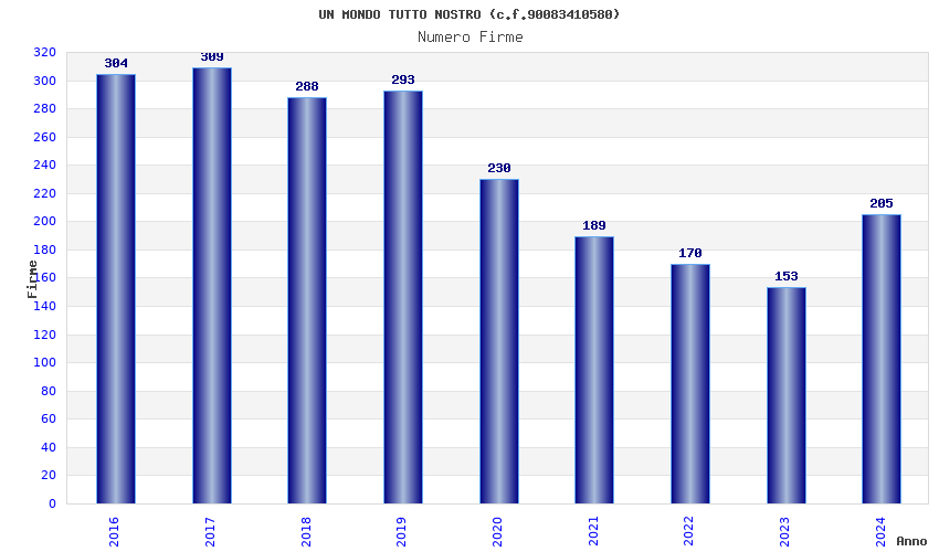 | Anno | Firme | Importi | Media | Naz. | Reg. | Prov. | Comu. |