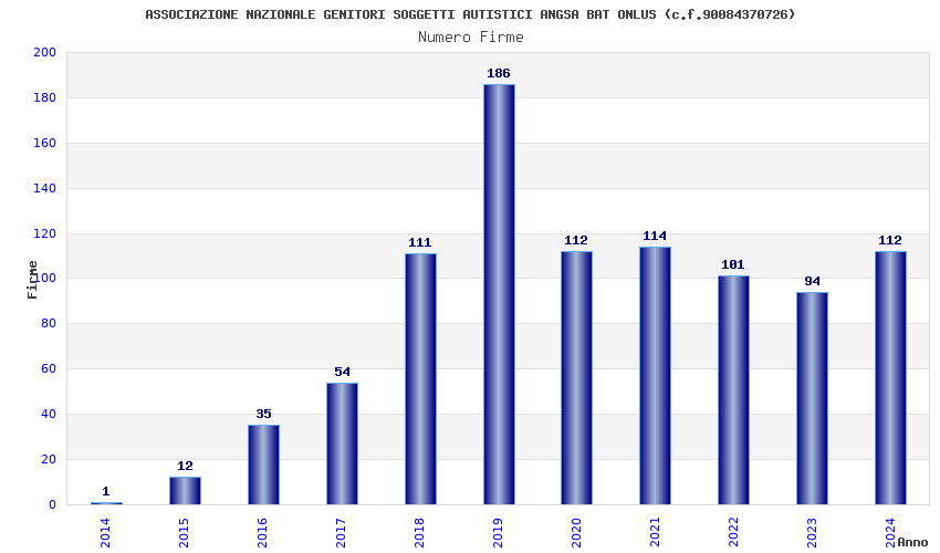 | Anno | Firme | Importi | Media | Naz. | Reg. | Prov. | Comu. |