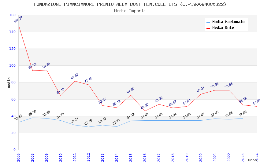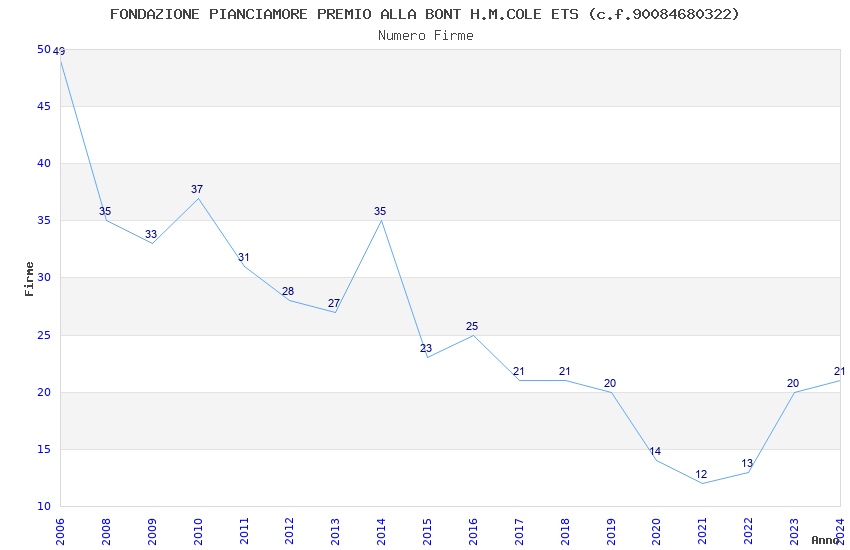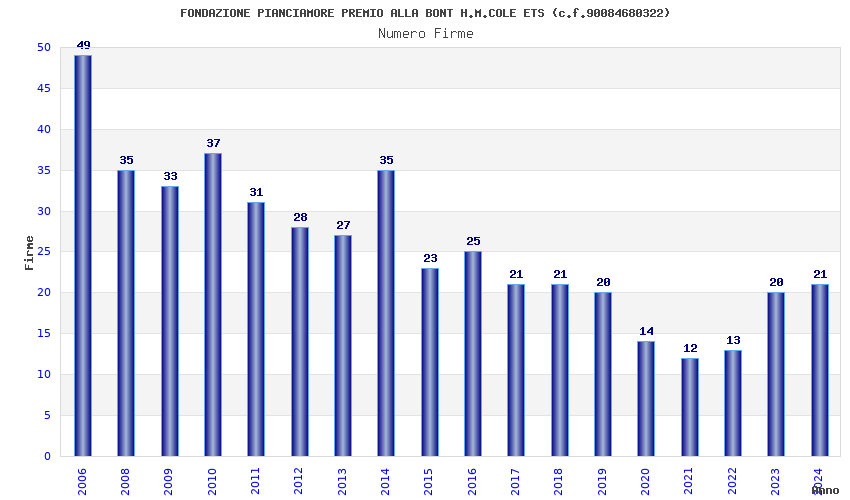 | Anno | Firme | Importi | Media | Naz. | Reg. | Prov. | Comu. |
