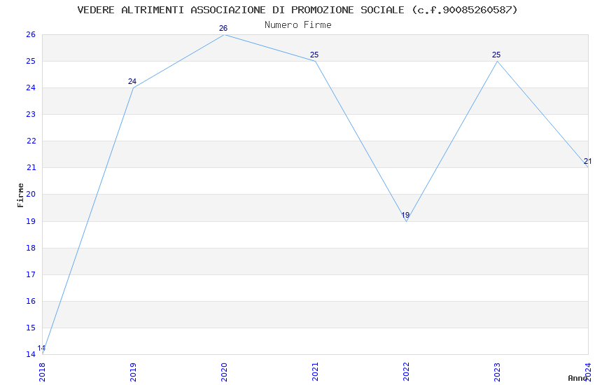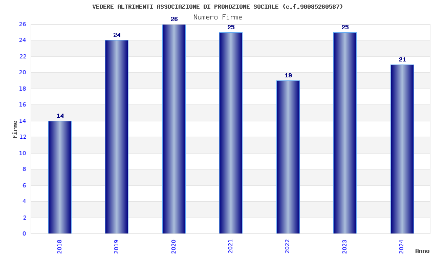 | Anno | Firme | Importi | Media | Naz. | Reg. | Prov. | Comu. |
