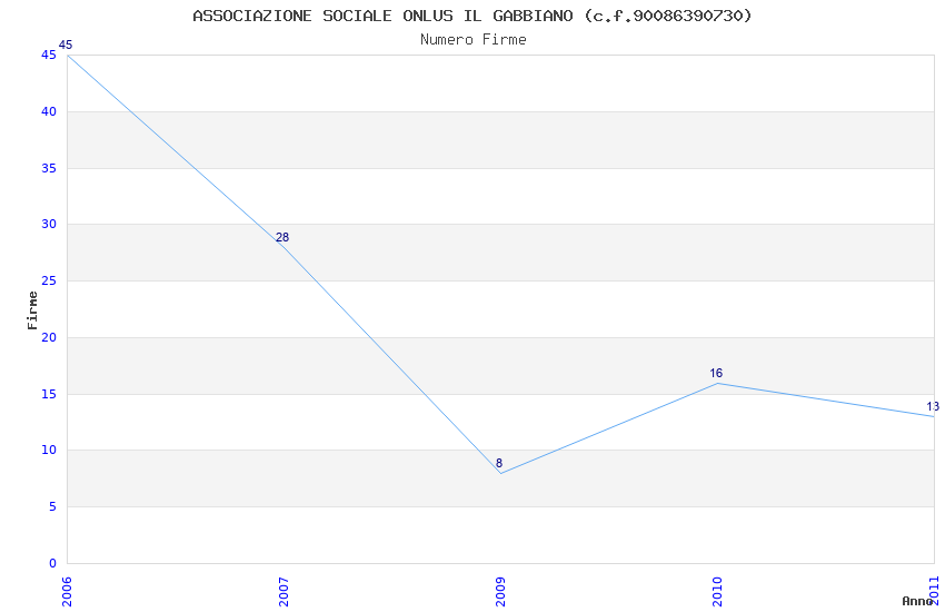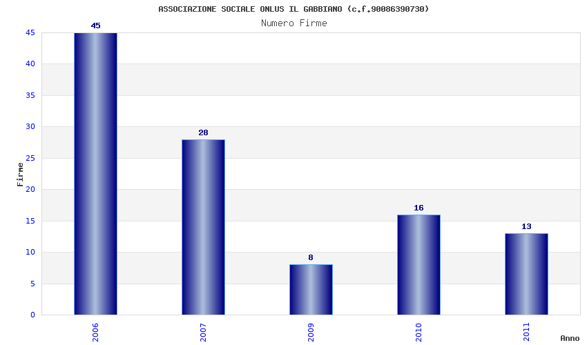 | Anno | Firme | Importi | Media | Naz. | Reg. | Prov. | Comu. |