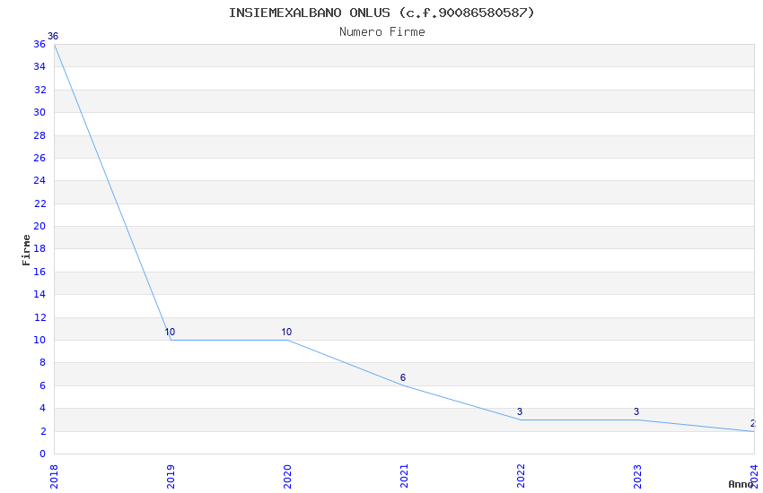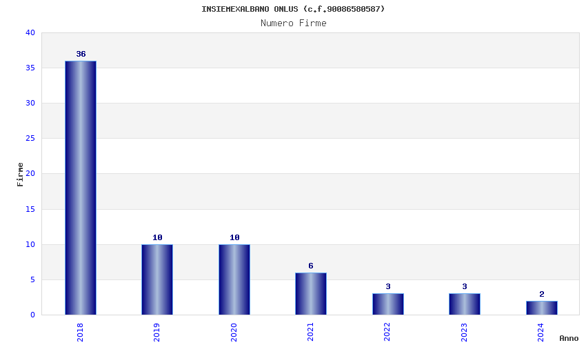 | Anno | Firme | Importi | Media | Naz. | Reg. | Prov. | Comu. |