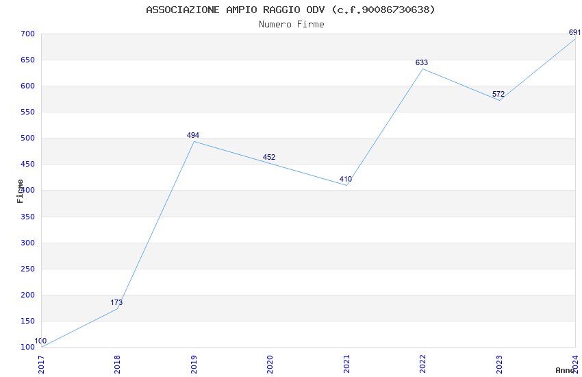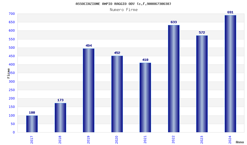 | 2017 | 100 | 1.882,29 | 18,82 | 24.433 | 1.361 | 690 | 3 |