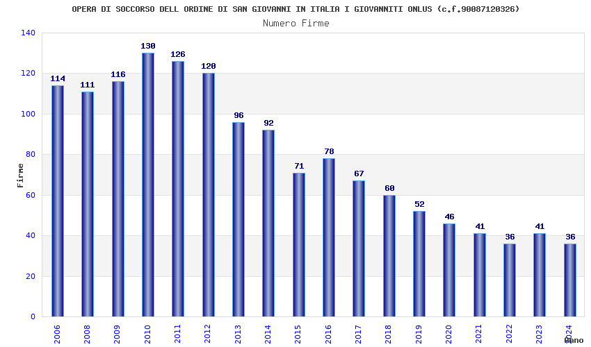 | Anno | Firme | Importi | Media | Naz. | Reg. | Prov. | Comu. |