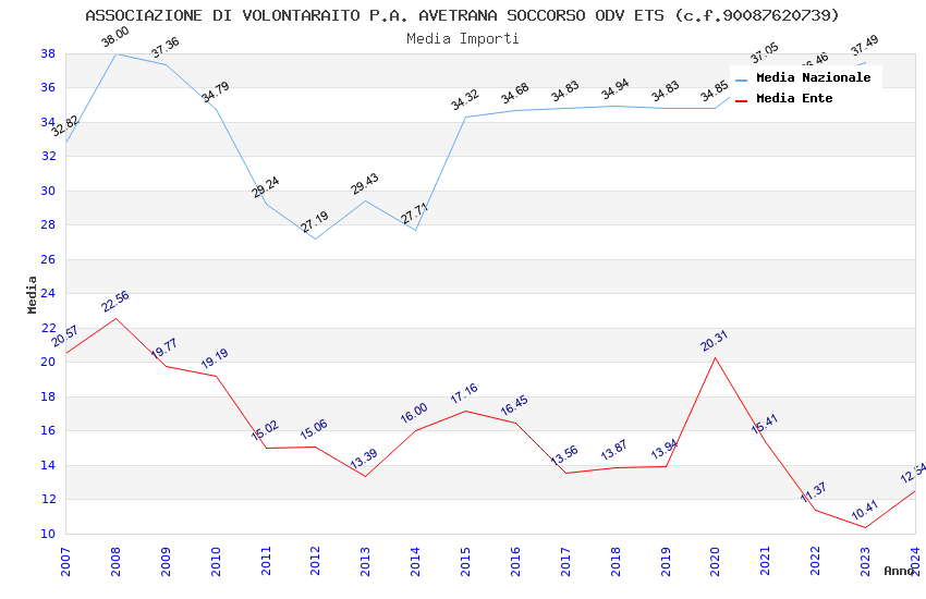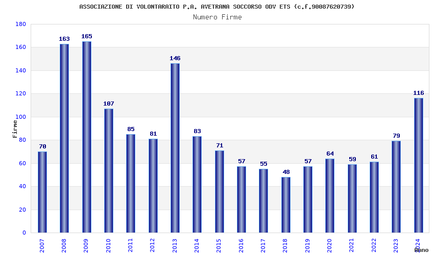 | Anno | Firme | Importi | Media | Naz. | Reg. | Prov. | Comu. |