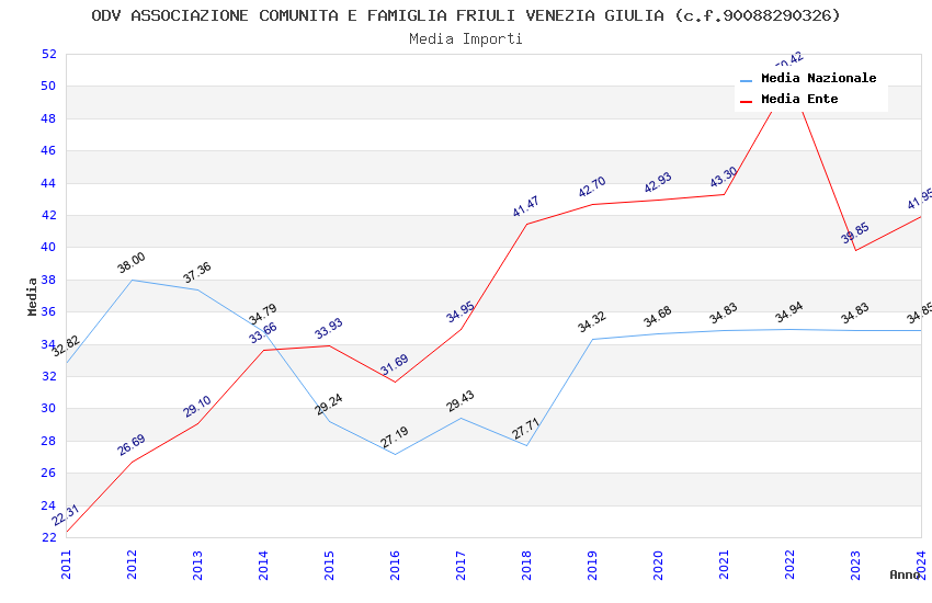 | Anno | Firme | Importi | Media | Naz. | Reg. | Prov. | Comu. |