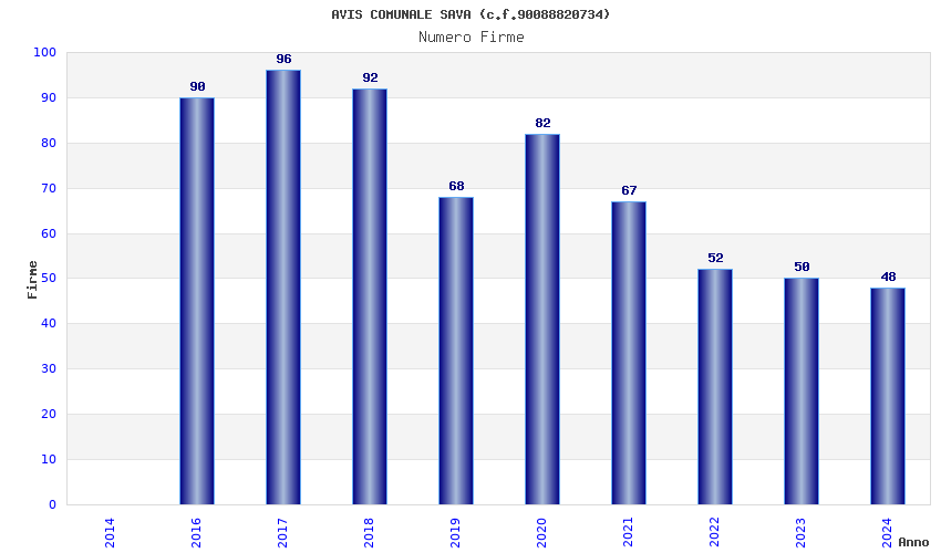 | 2017 | 96 | 1.804,56 | 18,80 | 25.109 | 1.198 | 161 | 3 |