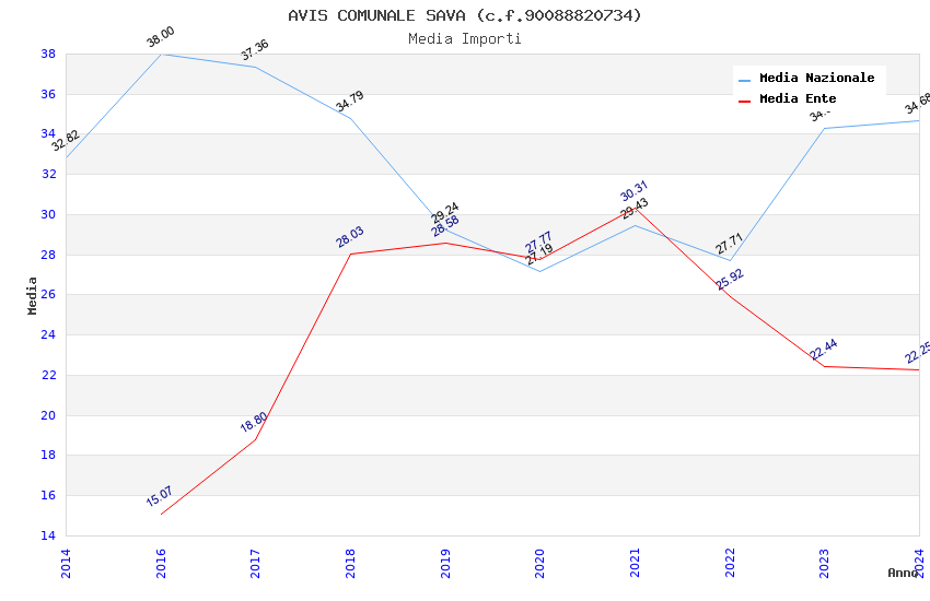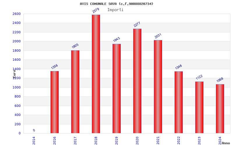 | Anno | Firme | Importi | Media | Naz. | Reg. | Prov. | Comu. |