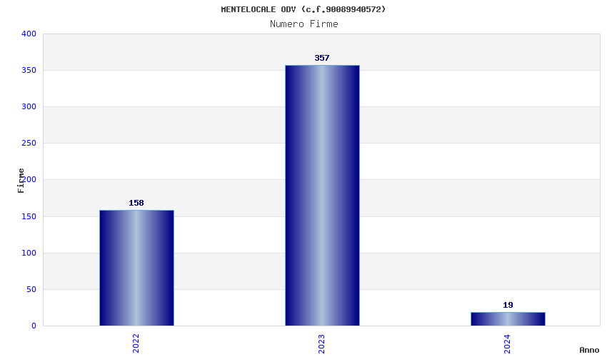 | Anno | Firme | Importi | Media | Naz. | Reg. | Prov. | Comu. |