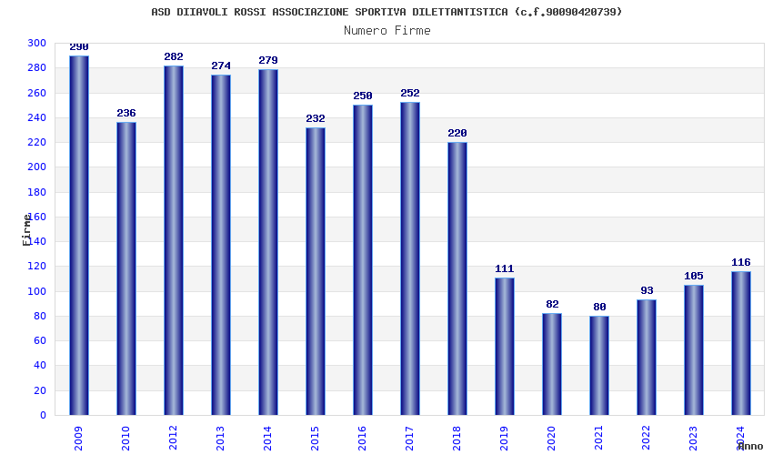 | Anno | Firme | Importi | Media | Naz. | Reg. | Prov. | Comu. |