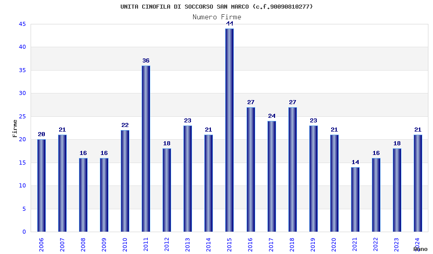 | Anno | Firme | Importi | Media | Naz. | Reg. | Prov. | Comu. |