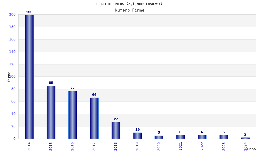 | Anno | Firme | Importi | Media | Naz. | Reg. | Prov. | Comu. |