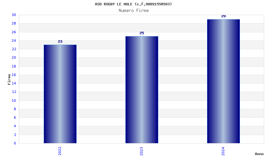 | Anno | Firme | Importi | Media | Naz. | Reg. | Prov. | Comu. |