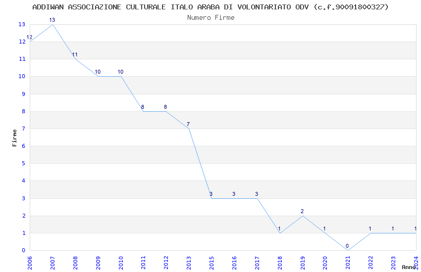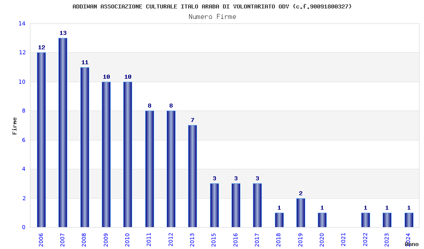 | Anno | Firme | Importi | Media | Naz. | Reg. | Prov. | Comu. |