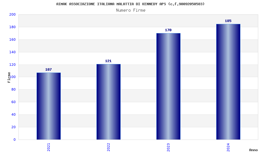 | Anno | Firme | Importi | Media | Naz. | Reg. | Prov. | Comu. |