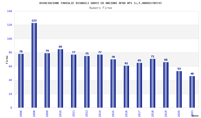| Anno | Firme | Importi | Media | Naz. | Reg. | Prov. | Comu. |