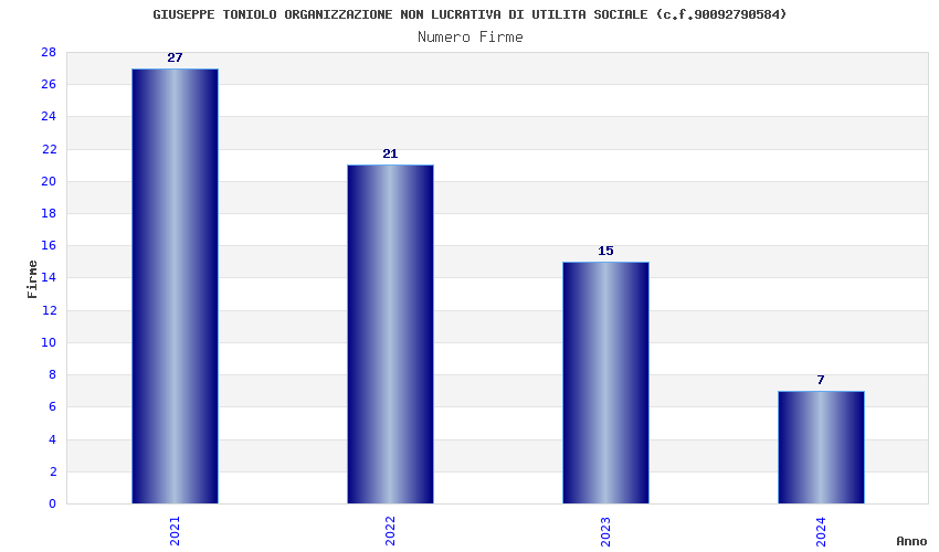 | Anno | Firme | Importi | Media | Naz. | Reg. | Prov. | Comu. |