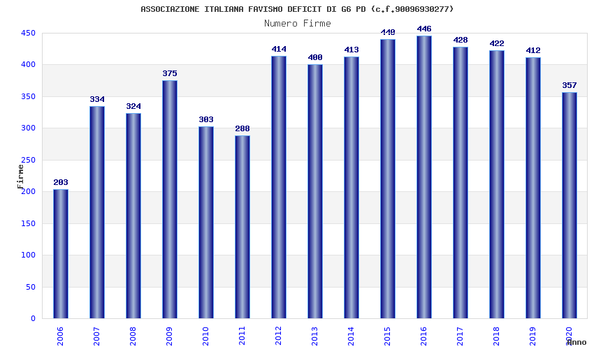| Anno | Firme | Importi | Media | Naz. | Reg. | Prov. | Comu. |
