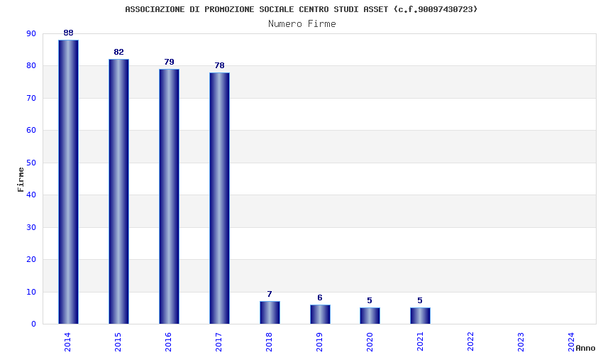 | 2017 | 78 | 1.673,71 | 21,46 | 26.259 | 1.253 | 111 | 27 |