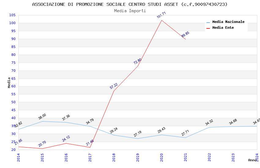 | Anno | Firme | Importi | Media | Naz. | Reg. | Prov. | Comu. |