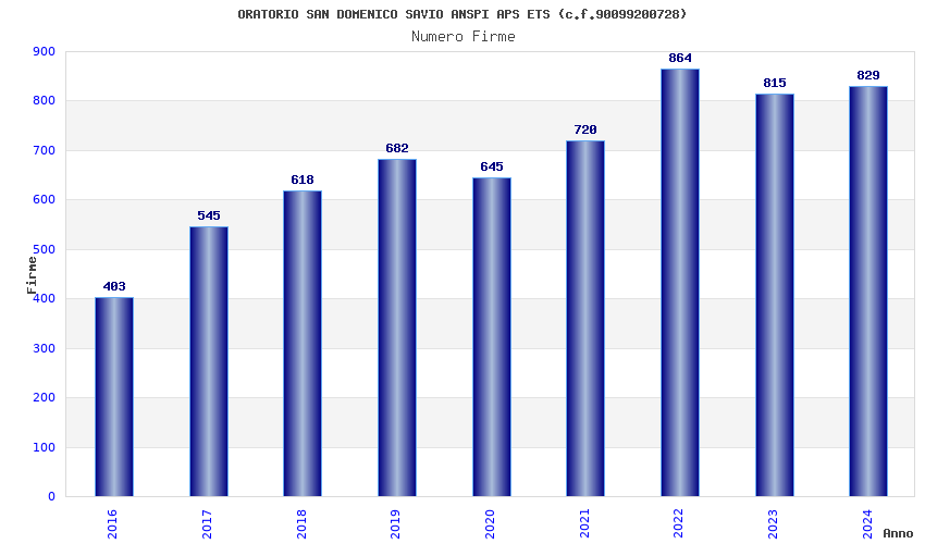 | Anno | Firme | Importi | Media | Naz. | Reg. | Prov. | Comu. |