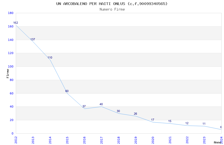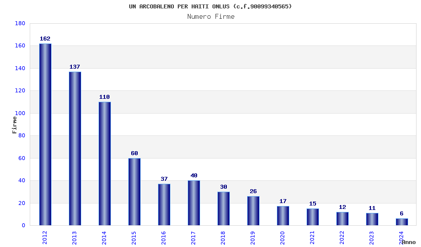 | Anno | Firme | Importi | Media | Naz. | Reg. | Prov. | Comu. |