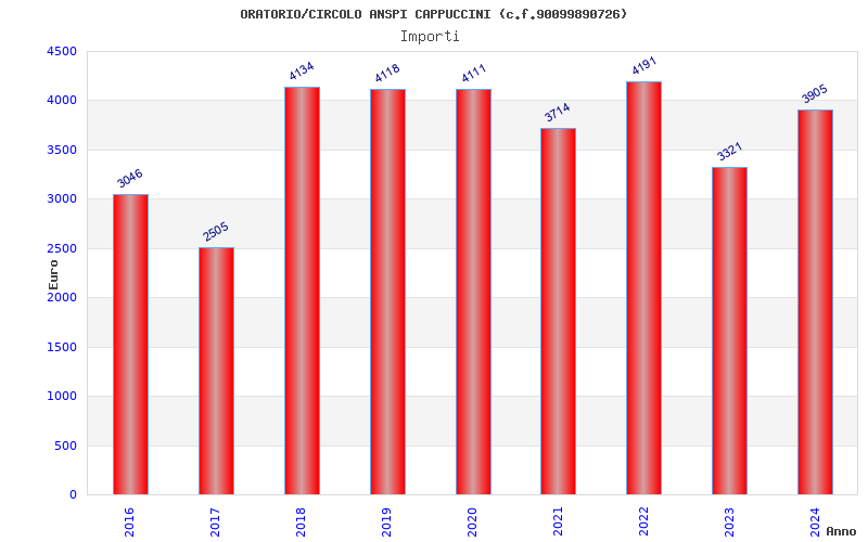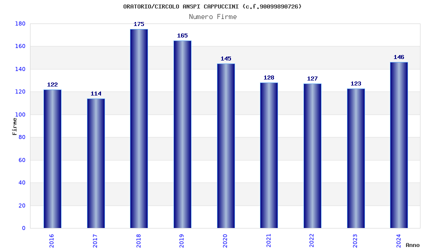 | Anno | Firme | Importi | Media | Naz. | Reg. | Prov. | Comu. |