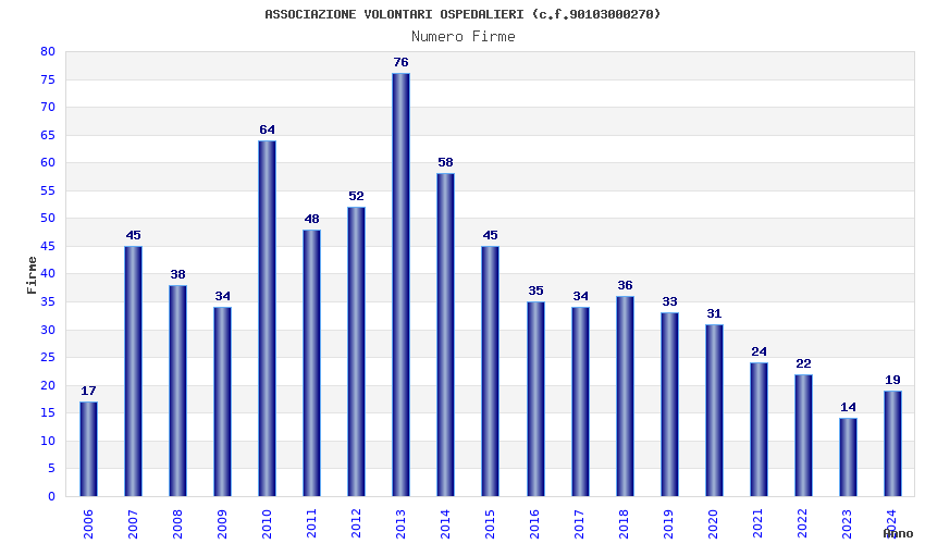 | Anno | Firme | Importi | Media | Naz. | Reg. | Prov. | Comu. |