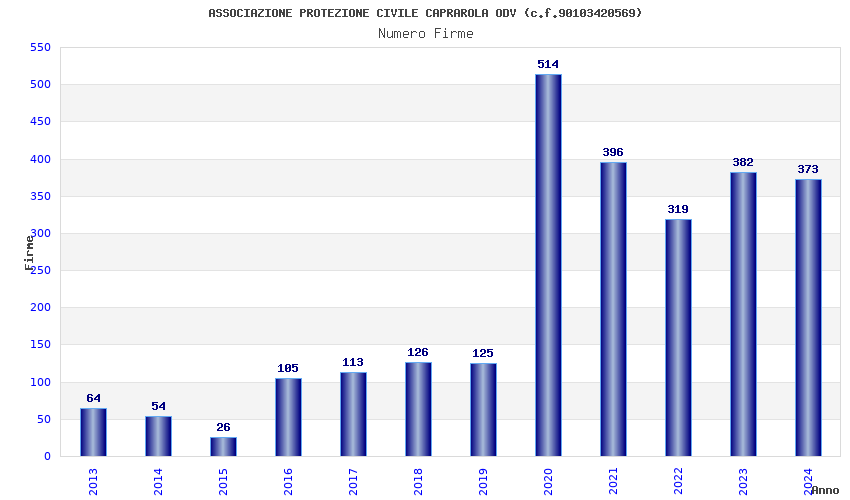 Anno Firme Importi Media Naz. Reg. Prov. Comu.