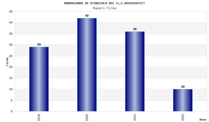 | Anno | Firme | Importi | Media | Naz. | Reg. | Prov. | Comu. |