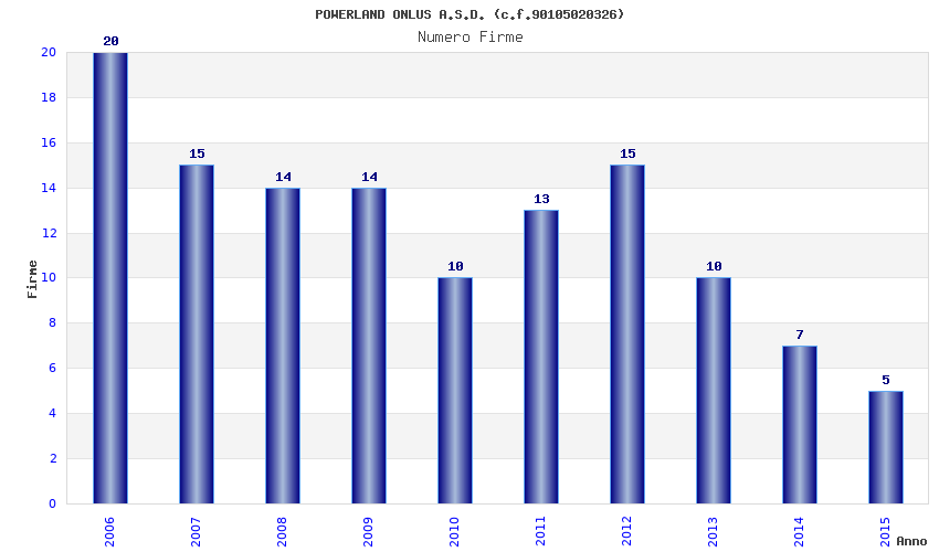 | Anno | Firme | Importi | Media | Naz. | Reg. | Prov. | Comu. |