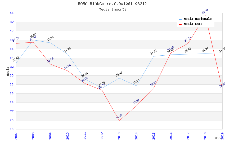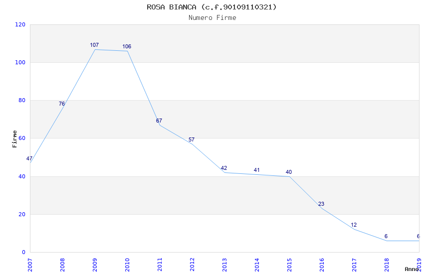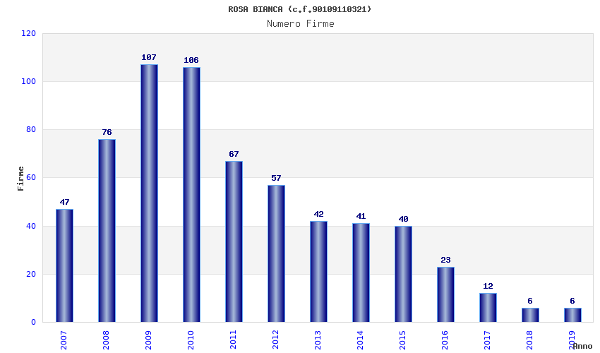 | Anno | Firme | Importi | Media | Naz. | Reg. | Prov. | Comu. |