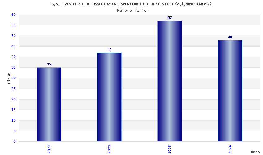 | Anno | Firme | Importi | Media | Naz. | Reg. | Prov. | Comu. |
