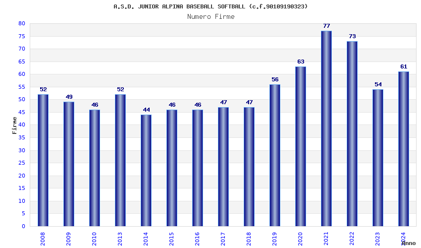 | 2022 | 73 | 3.430,28 | 46,99 | 15.099 | 320 | 67 | 59 |