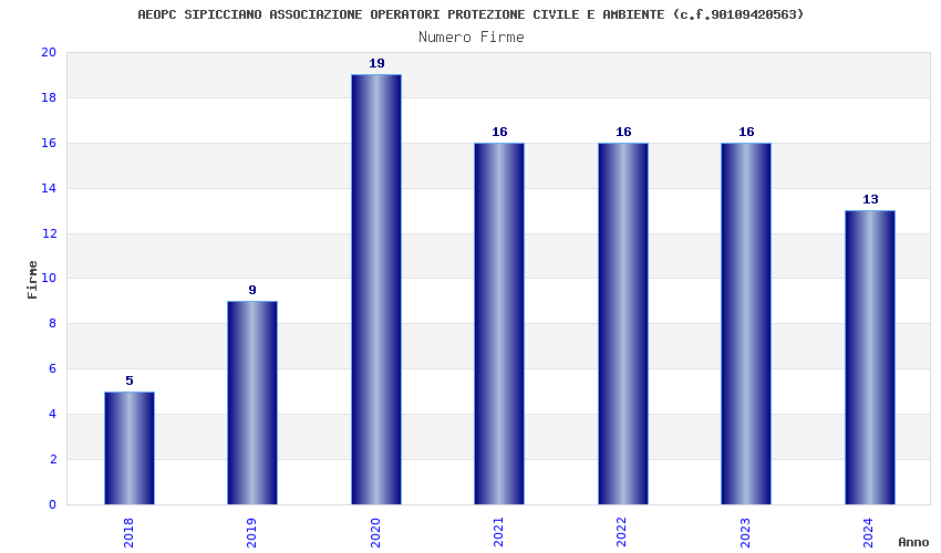 | Anno | Firme | Importi | Media | Naz. | Reg. | Prov. | Comu. |