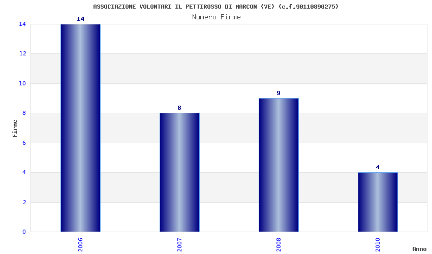 | Anno | Firme | Importi | Media | Naz. | Reg. | Prov. | Comu. |